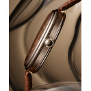 腕錶搭載 GG‑005P 自動機芯,配備重新設計的自動盤,具備 50 小時動力儲存與 4Hz 振頻,並可透過透明底蓋欣賞其細緻工藝。配以棕色小牛皮錶帶,Marrone 為日常佩戴增添經典優雅魅力。