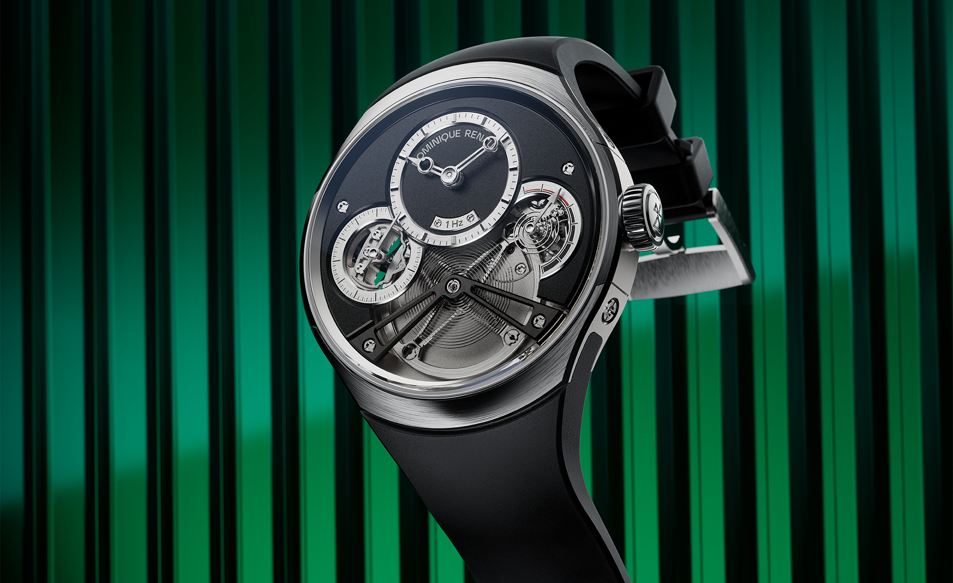 Dominique Renaud, co‑founder of the legendary Renaud & Papi manufacture and creator of numerous landmark complications, returns with a renewed focus on foundational movement principles. Guided by the maxim “form ever follows function,” his work embraces clarity, purity and a minimalist, self‑evident aesthetic.