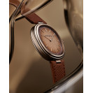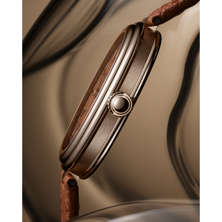 腕錶搭載 GG‑005P 自動機芯,配備重新設計的自動盤,具備 50 小時動力儲存與 4Hz 振頻,並可透過透明底蓋欣賞其細緻工藝。配以棕色小牛皮錶帶,Marrone 為日常佩戴增添經典優雅魅力。